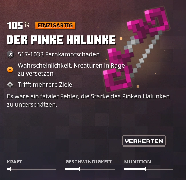 | Diese Dateien sind durch Mojang Studios urheberrechtlich geschützt Diese Screenshots, Sounds, Texturen oder Musikstücke stammen aus Minecraft Dungeons oder sind ein Teil urheberrechtlich geschützten Materials von Mojang wie z. B. Artworks oder anderem Inhalt. Diese Dateien fallen nicht unter die Fandom AGB Lizenzierung und sind innerhalb des Minecraft Wikis frei nutzbar. |