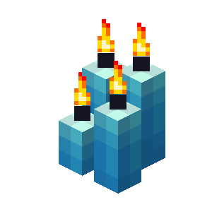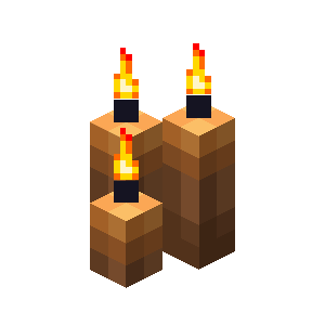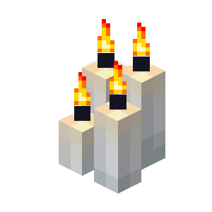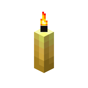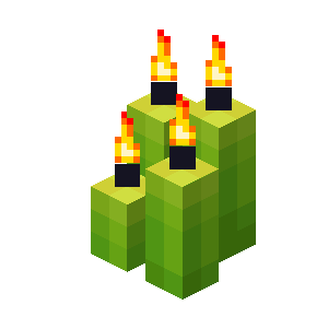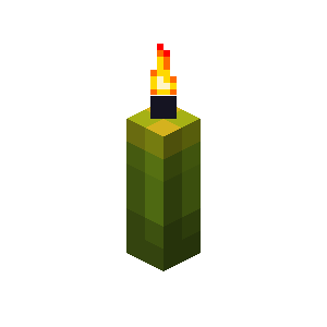 Kerzen können als Lichtquelle verwendet werden und erzeugen Licht wie eine Meeresgurke. Bis zu vier ähnlich gefärbte Kerzen können in einem Block platziert werden, wobei jede Kerze das Lichtniveau um 3 erhöht.