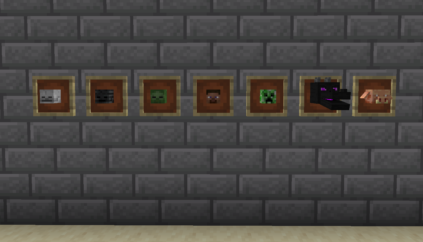 - Wenn Zombies (alle Arten) oder Skelette (alle Arten) einen Kopf aufnehmen, können sie diesen tragen.
