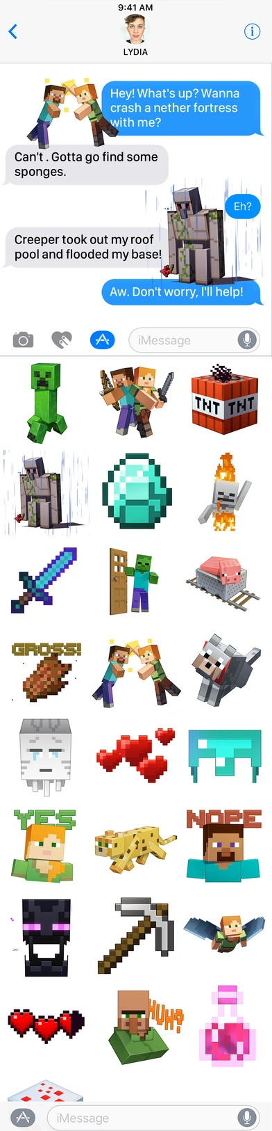 Im Mai 2017 veröffentliche Mojang Animationen für das iPhone, die in den iMessage-Chats verwendet werden können[13]. YouTube-Trailer