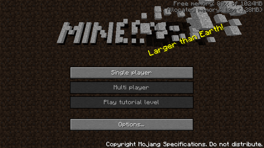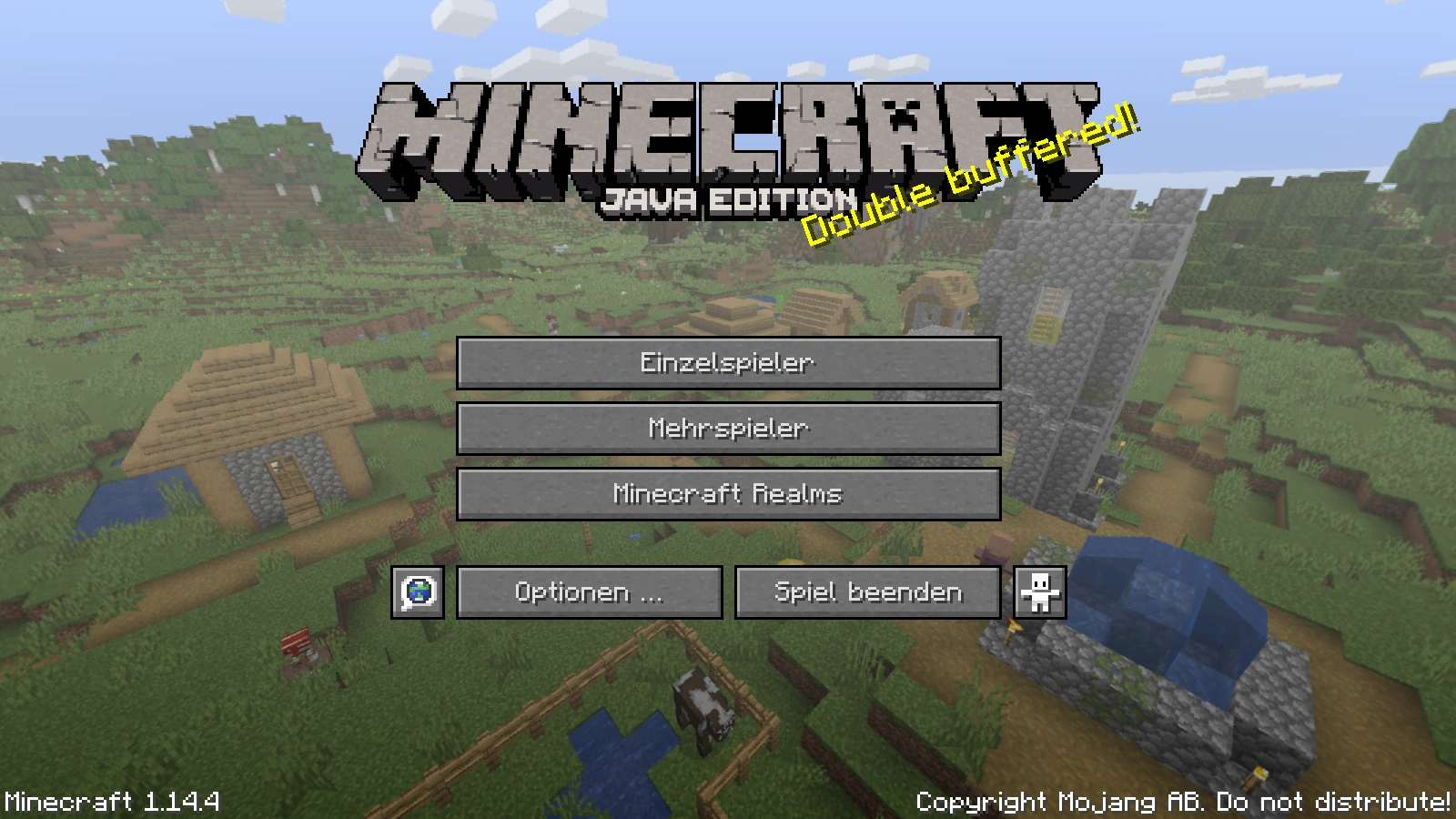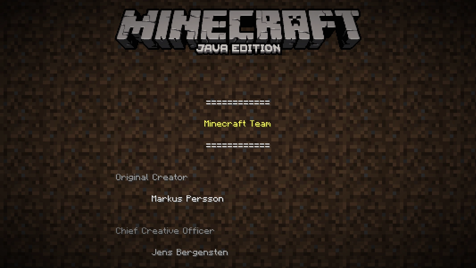 Auf dieser Seite wird das Menü der Java Edition von Minecraft ausführlich erklärt. Klickt man im Hauptmenü auf den Schriftzug "Copyright Mojang AB. Do not distribute!", werden die Credits angezeigt, was man mit Esc abbrechen kann.