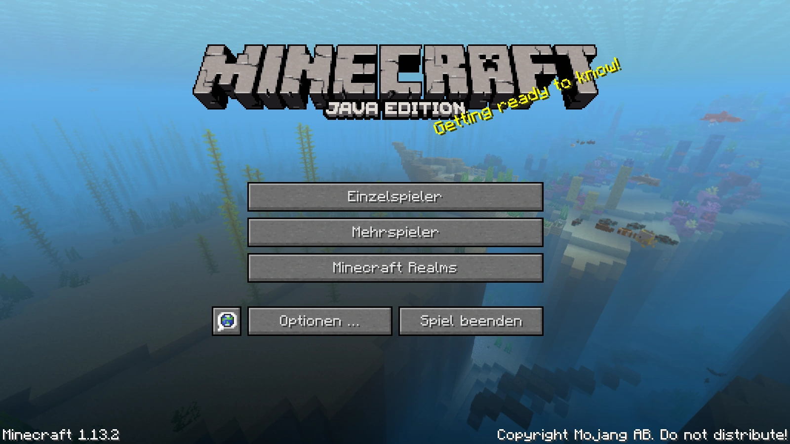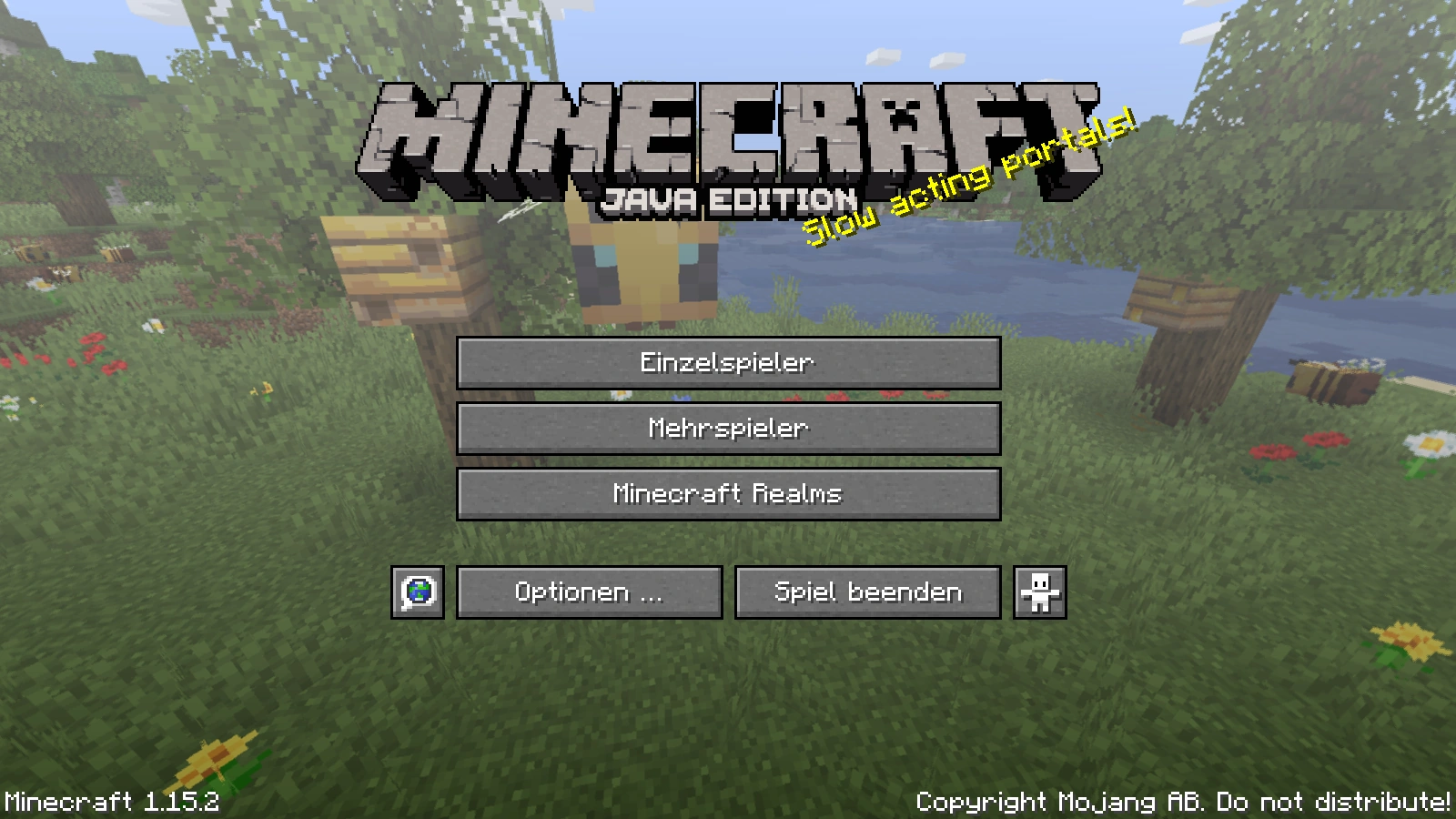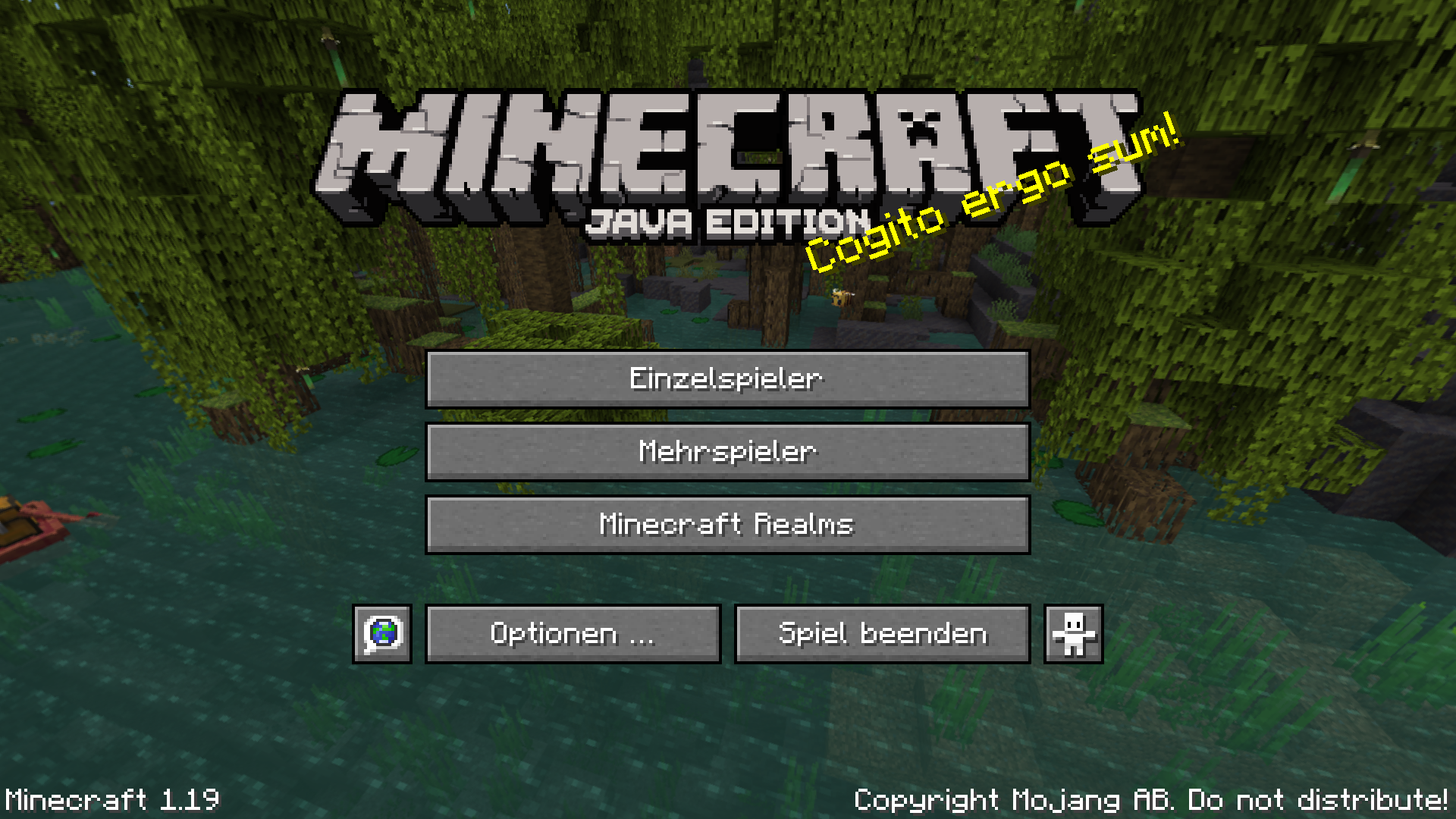 Auf dieser Seite wird das Menü der Java Edition von Minecraft ausführlich erklärt. Klickt man im Hauptmenü auf den Schriftzug "Copyright Mojang AB. Do not distribute!", werden die Credits angezeigt, was man mit Esc abbrechen kann.