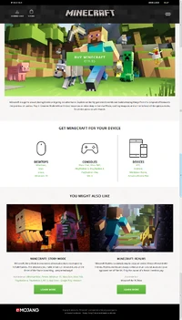 Auf der Hauptseite von minecraft.net wird mit einem zentralen Button das Spiel zum Kauf angeboten. Darunter gibt es Links zu aktuellen Themen.