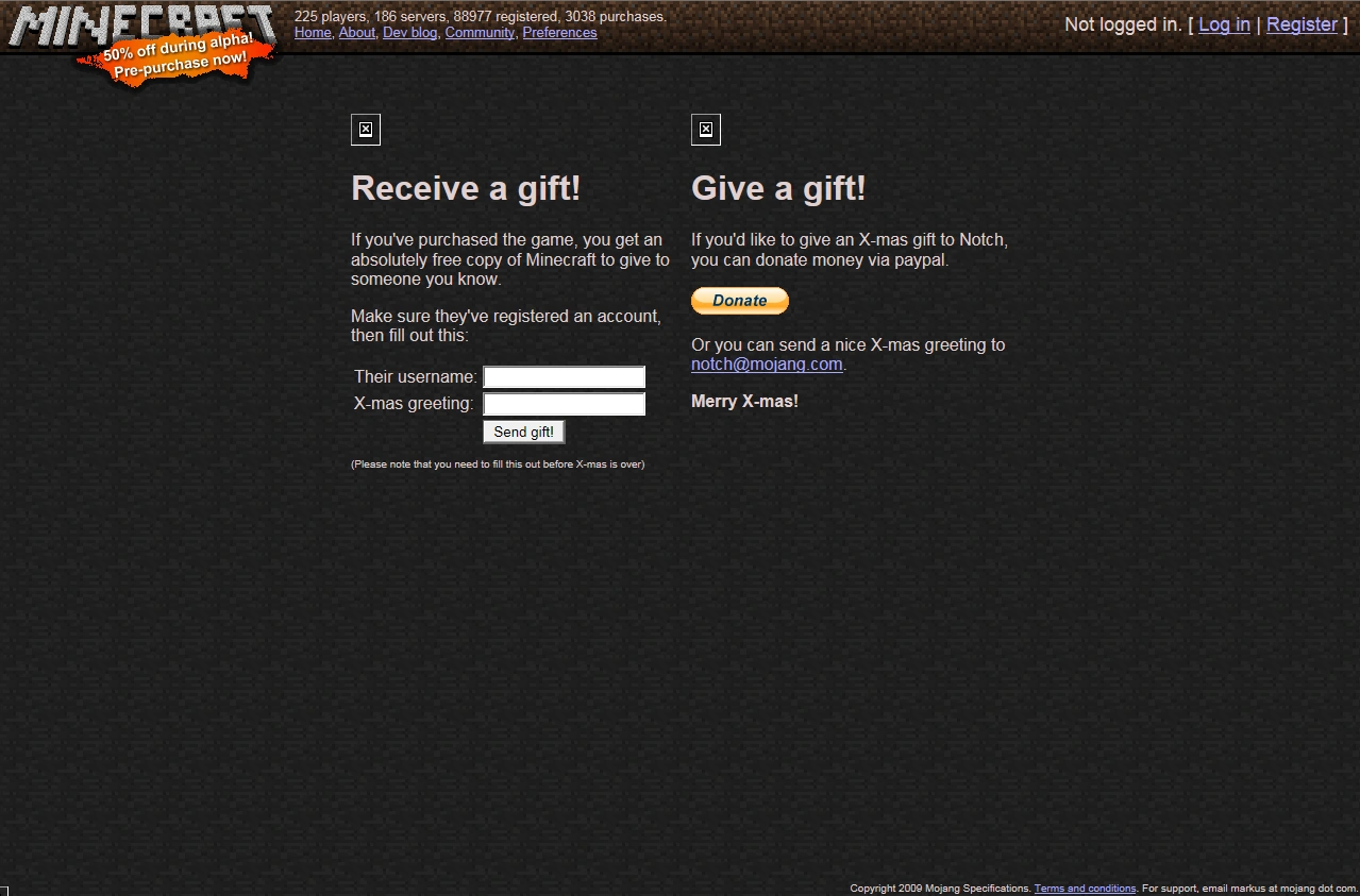 - ↑ http://notch.tumblr.com/post/345869954/as-per-demand-you-can-now-gift-the-game