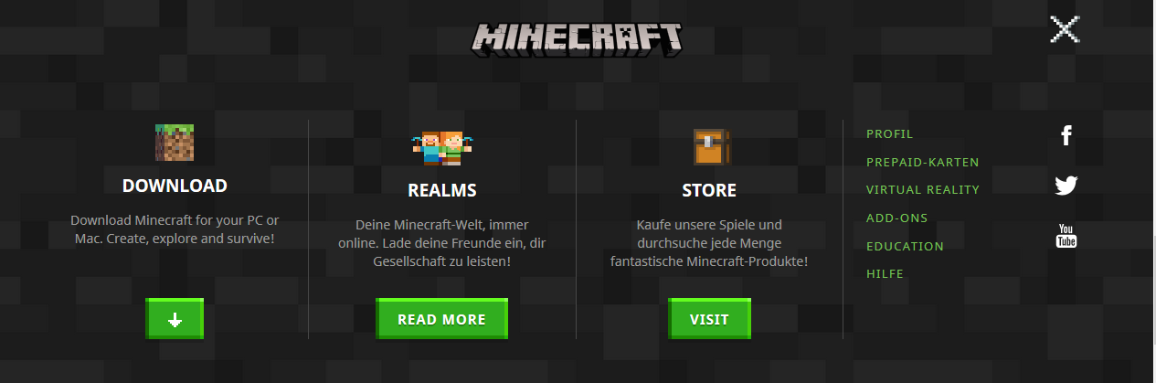 Darunter stehen Links für alle anderen Plattformen, auf denen man Minecraft spielen kann.
