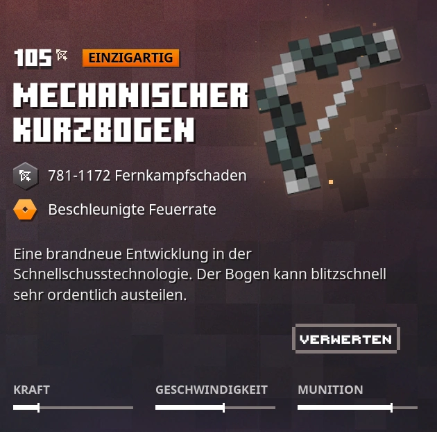 Der Mechanische Kurzbogen ist eine einzigartige Fernkampfwaffe in Minecraft Dungeons. Er ist eine Variante des Kurzbogens.