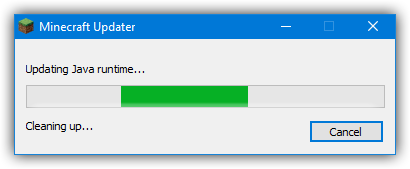 - Prüfung der bisherigen Minecraft-Installation-Java-Laufzeitumgebung (ein außerhalb von Minecraft auf dem Rechner installiertes Java wird dabei ignoriert). Wenn in der launcher.json eine neuere Java-Version steht, wird sie heruntergeladen, entpackt und in die Minecraft-Installation integriert.