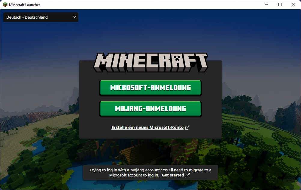 Um Minecraft zu spielen zu können benötigt man zuerst einen Microsoft-Konto (Account). Man kann es kostenlos auf minecraft.net erstellen, dann spielt man im Demo-Modus – oder man kauft Minecraft in der Vollversion.