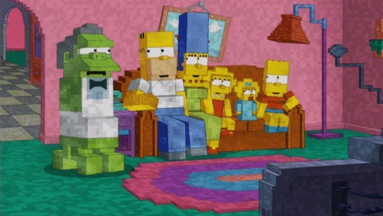 Im April 2014 war die Einleitung zur Episode "Luca$" der TV-Trickserie The Simpsons (Staffel 25 Folge17) im Minecraft-Stil gestaltet. Statt "The Simpsons" zeigte die Episode den Titel "Simcraft". Die blockige Familie Simpson lief durch ihren Heimatort Springfield und setzte sich zu Hause auf die Couch. Dann kam Kneipenbesitzer Moe als Creeper dazu und explodierte. Notch kommentierte auf Twitter: "Die Simpsons haben einen Minecraft Couch Gag gemacht. Ich bin nicht sicher, was ich davon halten soll."[17]