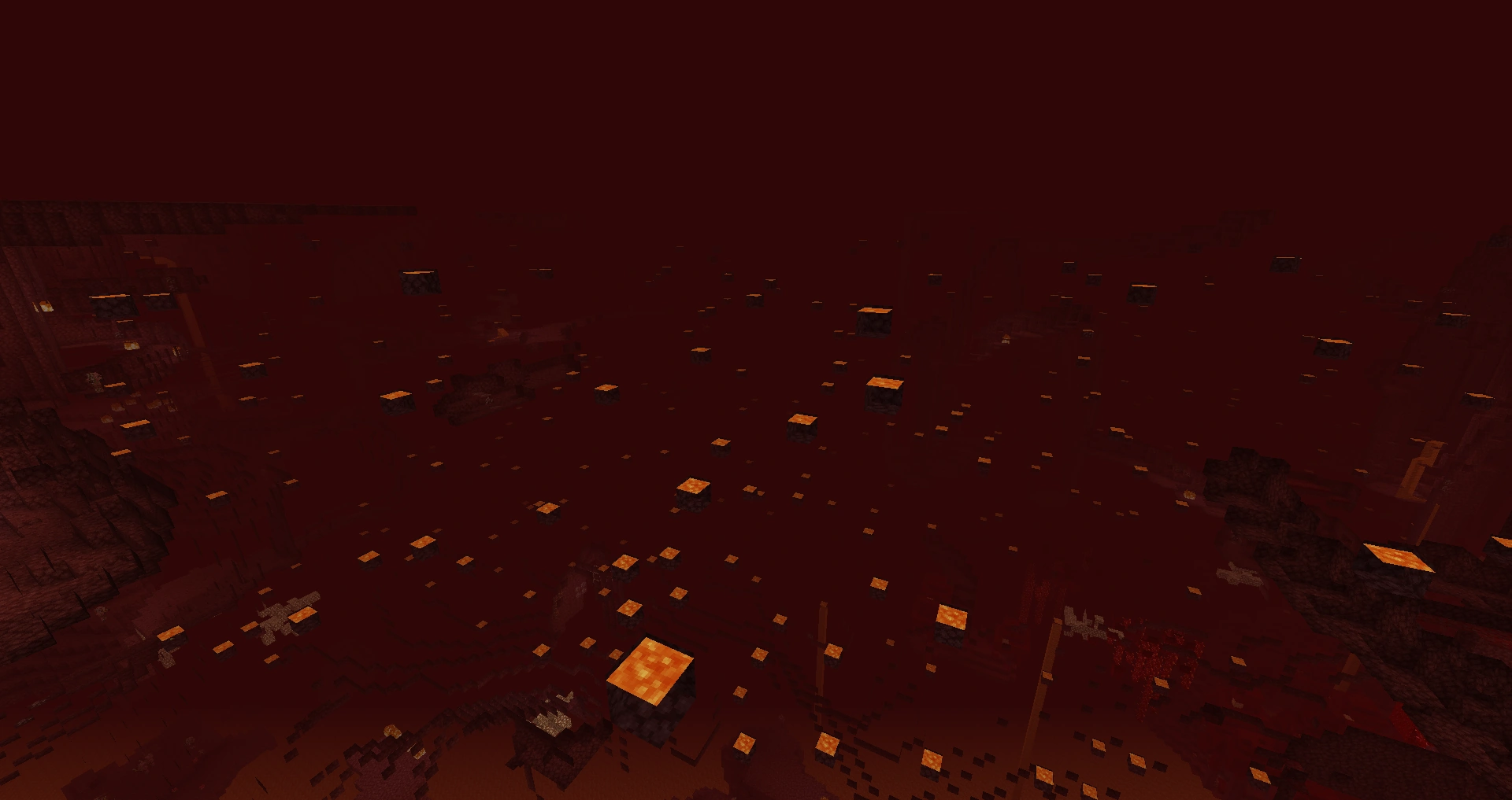 Das Gestein des Nethers ist von Lavablöcken durchsetzt, wie man im Zuschauermodus mit Nachtsicht sehen kann