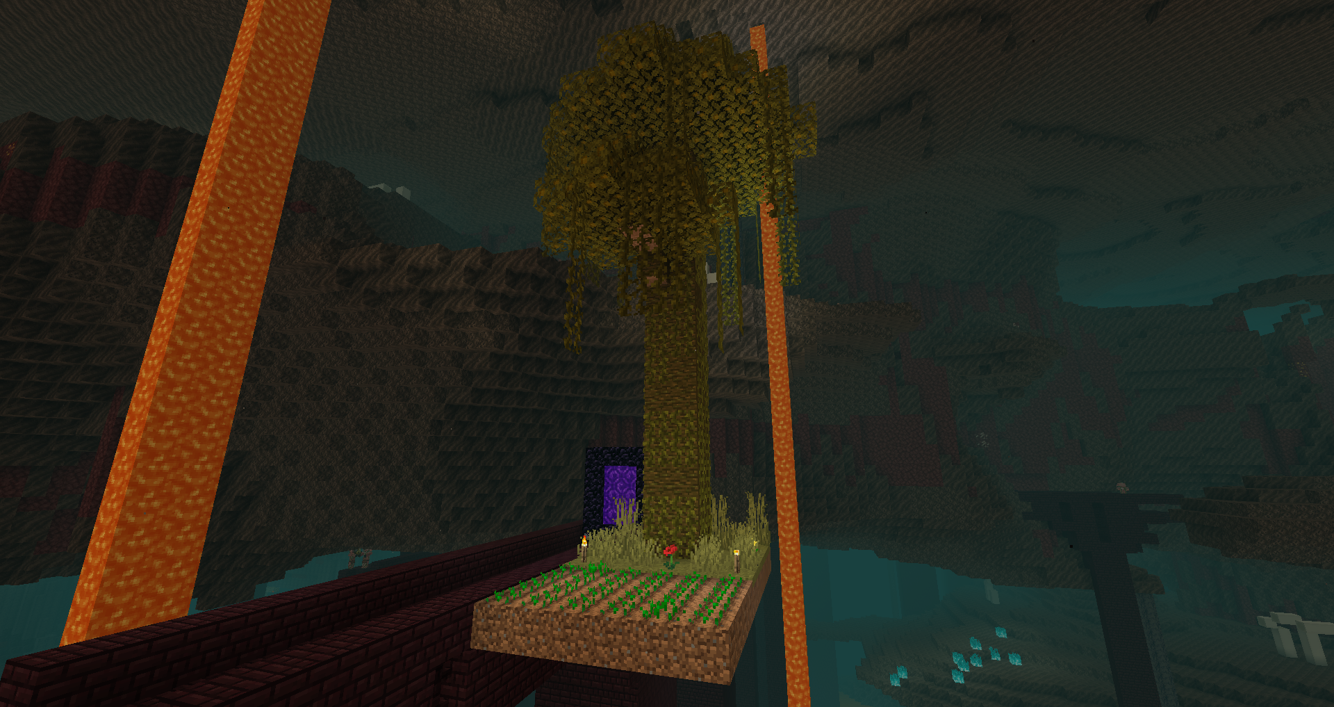 | Luft • Grundgestein • Lava • Kies • Brauner Pilz • Roter Pilz • Feuer • Netherstein • Seelensand • Glowstone • Netherquarzerz • Truhe |