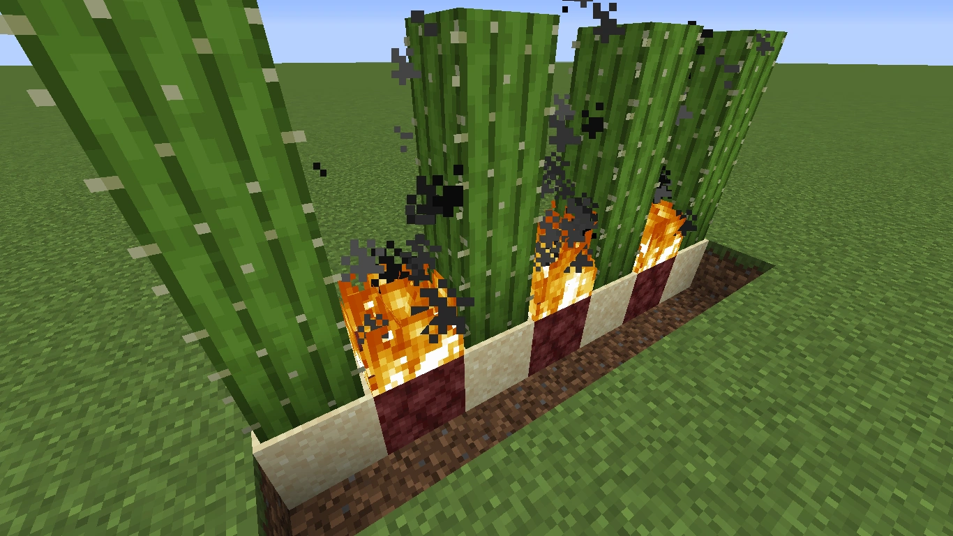 Eine weitere Falle kann mit Netherstein und Kaktus gebaut werden. Hier platziert man abwechselnd in einer Reihe Sand und Netherstein. Auf dem Sand platziert man Kakteen und den Netherstein zündet man an.