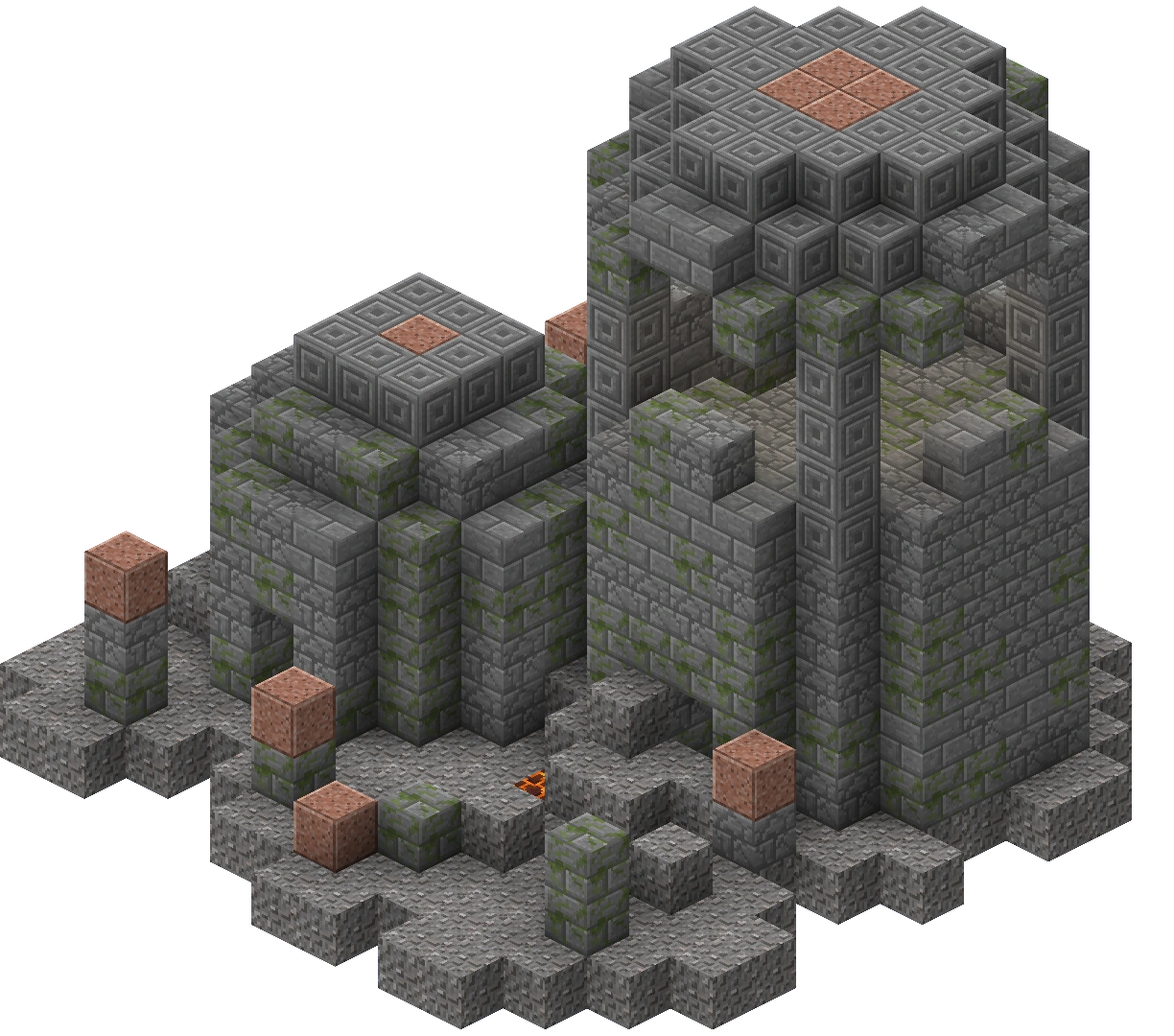 Ozeanruinen können einzeln generiert werden oder bilden ein kleines Ruinendorf. Die Einzelruine ist der weitaus häufigste Fall. Mehrere Ruinen sind seltener, und sehr selten besteht das Dorf aus mehr als fünf Ruinen.