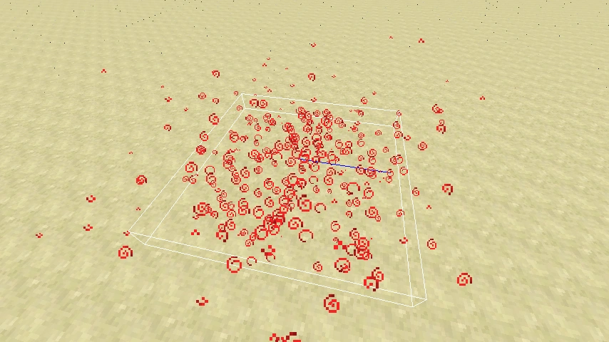 Die meisten Objekte können bewegt werden, nicht so die Partikelwolke. Sie ist nicht schwerkraftabhängig, sondern verweilt an der Stelle, an der sie entstanden ist. Auch mit Wasser oder durch Zubauen kann man sie nicht bewegen. Dafür verringert sie fortlaufend ihre Größe, bis sie nach kurzer Zeit ganz verschwindet.