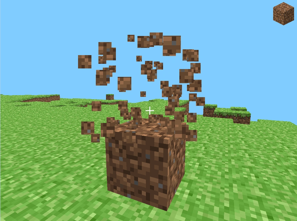 Die ersten programmierten Partikel sind beim Zerstören eines Blockes (hier Erde) zu sehen. Version Pre-Classic Pre 0.0.9a (rd-161348)