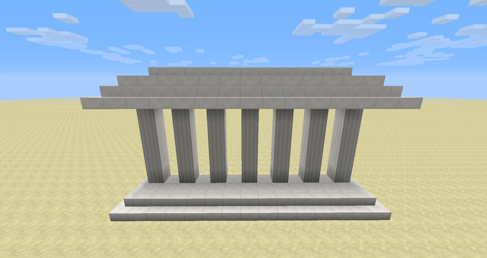 Die Front eines Tempels mit antik anmutenden Quarzsäulen.