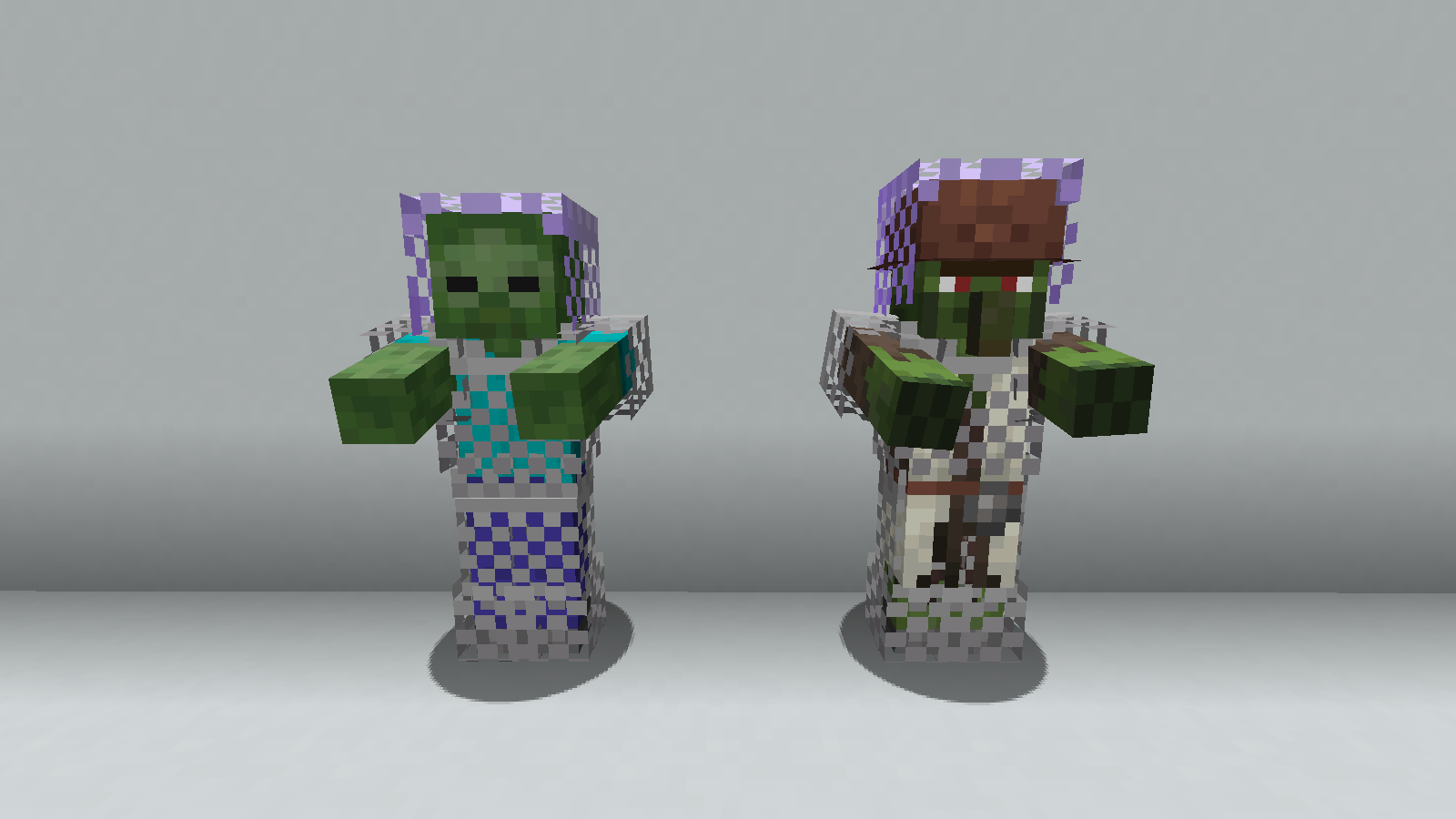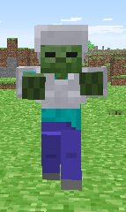Ein Zombie und ein Zombiedorfbewohner mit voller Kettenrüstung bei Schwierigkeitsgrad Schwer.