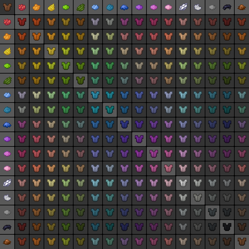 Das alte Rezept der Stoffrüstung vor Alpha 1.0.8 sah so aus: