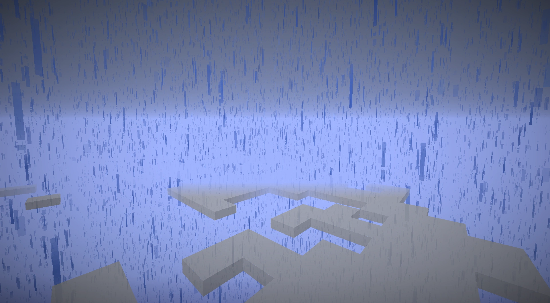 In den Texturdaten gibt es unter minecraft.jar/assets/minecraft/textures/environment/rain.png auch eine Textur für die fallenden Regentropfen, die aus feinen, blauen Linien besteht. Wenn man die Textur mit einem Ressourcenpaket manipuliert, hat man einen anderen Regen.