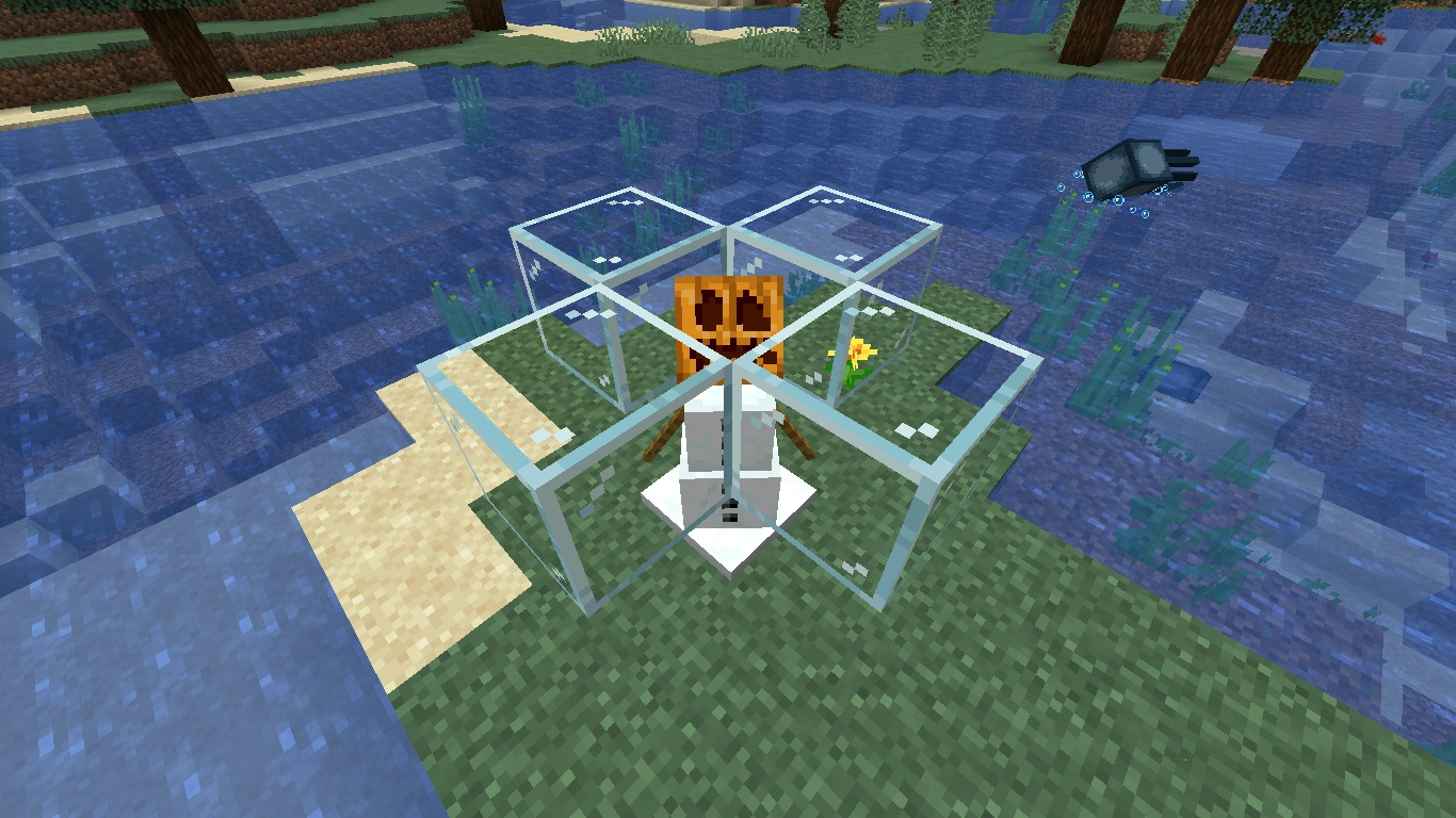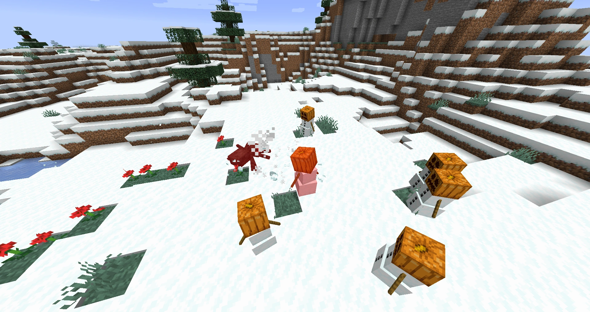 - Schneegolems können geschoren werden. Sie verlieren dabei den Kürbiskopf und ähneln nun noch mehr einem Schneemann. Der Spieler erhält den geschnitzten Kürbis, kann aber den geschnitzten Kürbis nicht wieder hinzufügen.