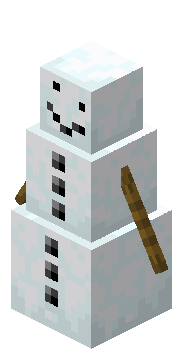 - Schneegolems folgen einem Spieler nicht, sondern bewegen sich ziellos durch die Welt. Sie meiden Gefahren wie Lava, Kakteen und Abgründe. Sie können Stufen und Löcher von einem Block überwinden.