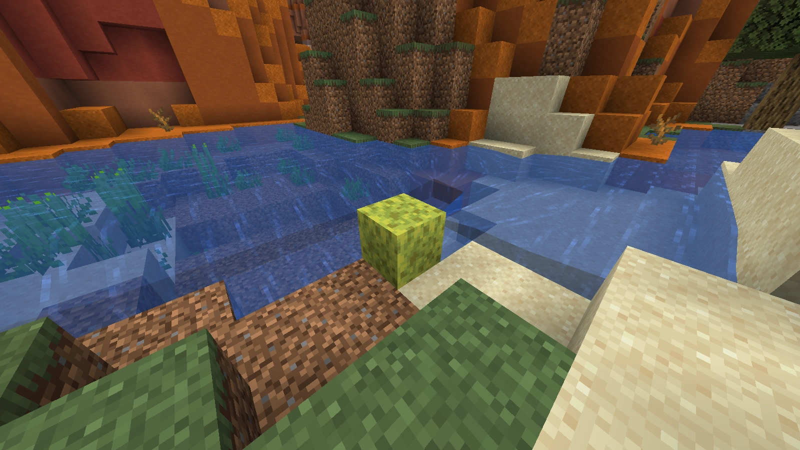 - Wird ein trockener Schwamm in ein 1×1 Block großes Wasserloch gesetzt, ersetzt er das Wasser, ohne es aufzusaugen. Der Schwamm bleibt daher trocken.