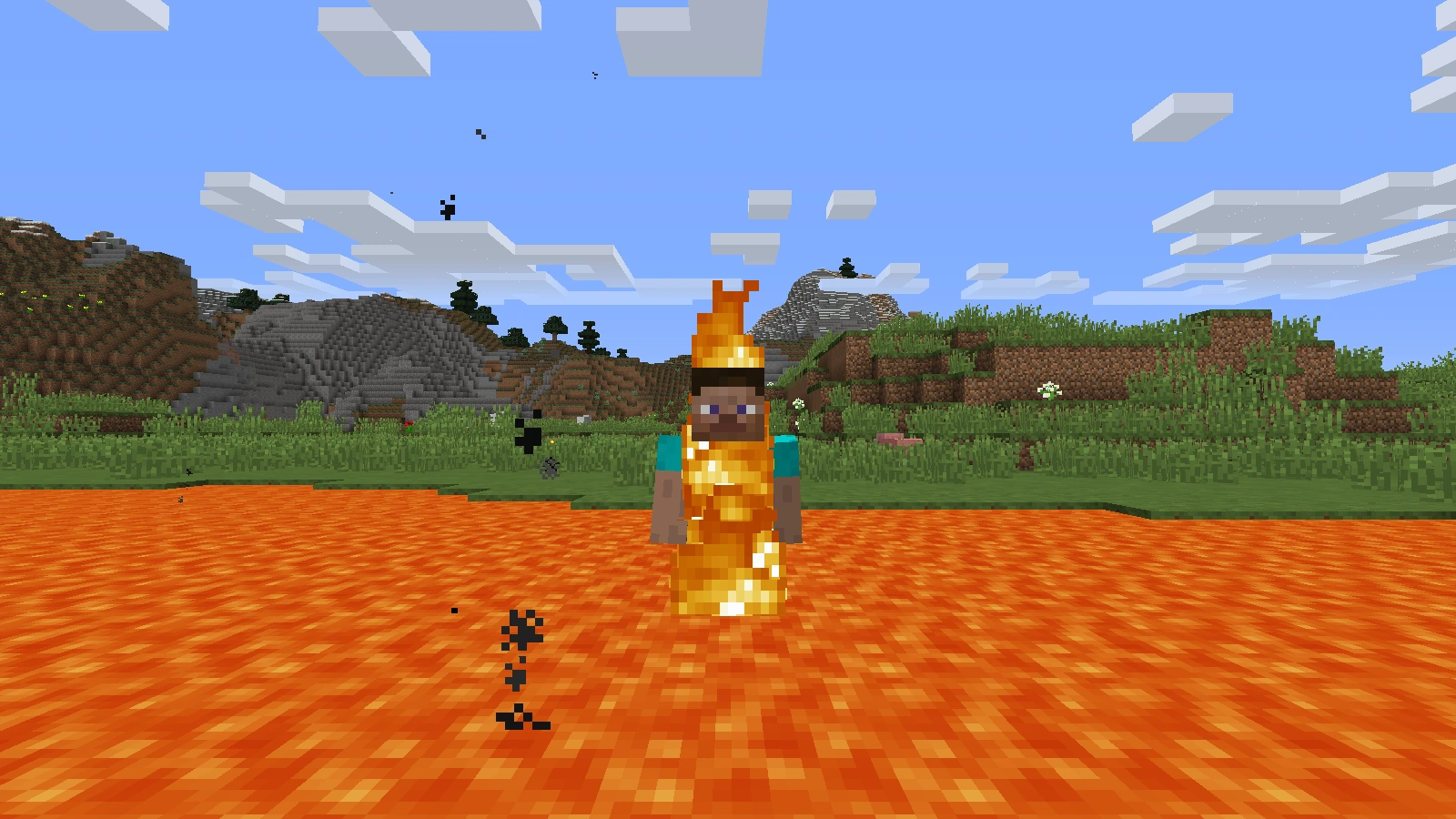 Dank des Trankes der Feuerresistenz schwimmt der Spieler in Lava
