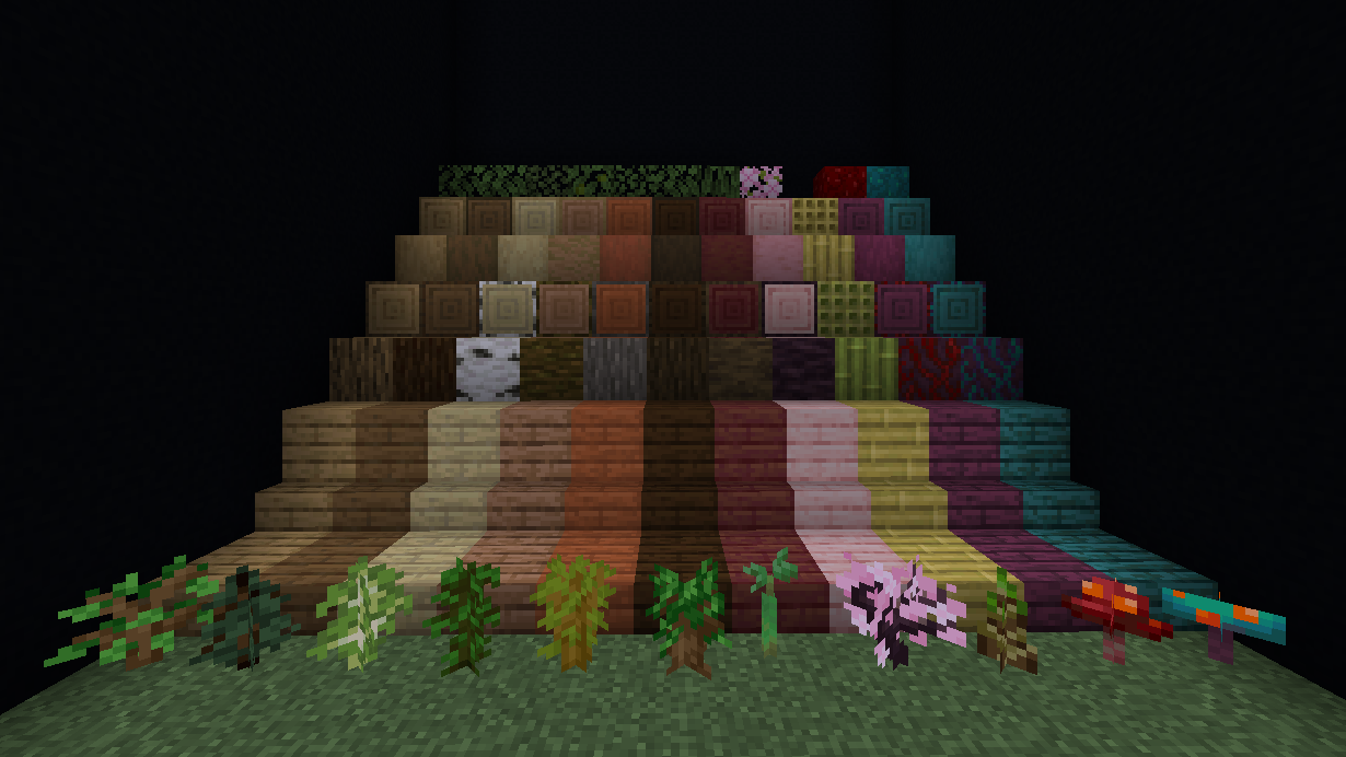 Offizieller Screenshot von Mojang zu den in der Vollversion 1.7 (13w43a) hinzugefügten Setzlingen (Akaziensetzling und Schwarzeichensetzling).