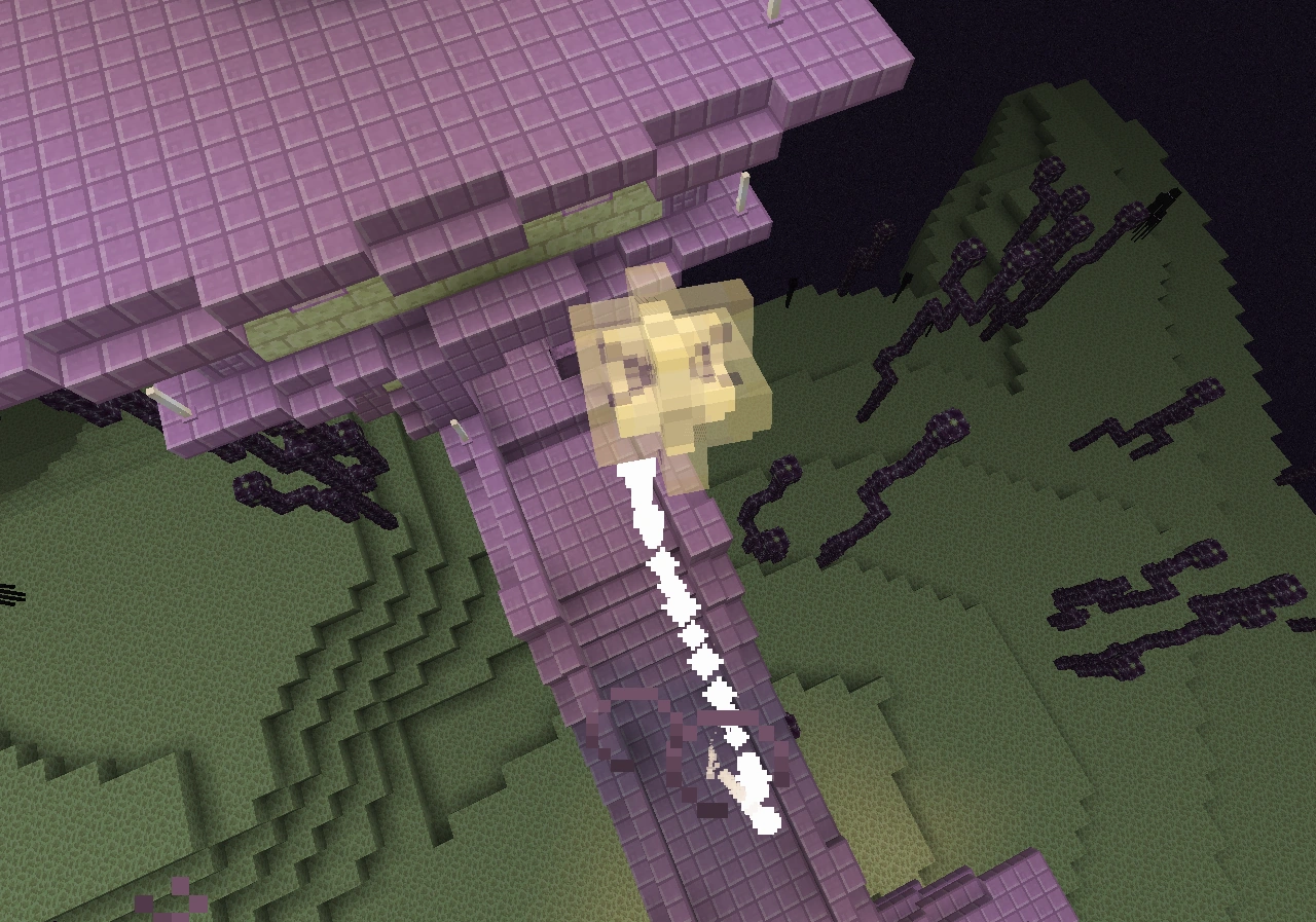 Ein Shulker schaut aus seinem Block