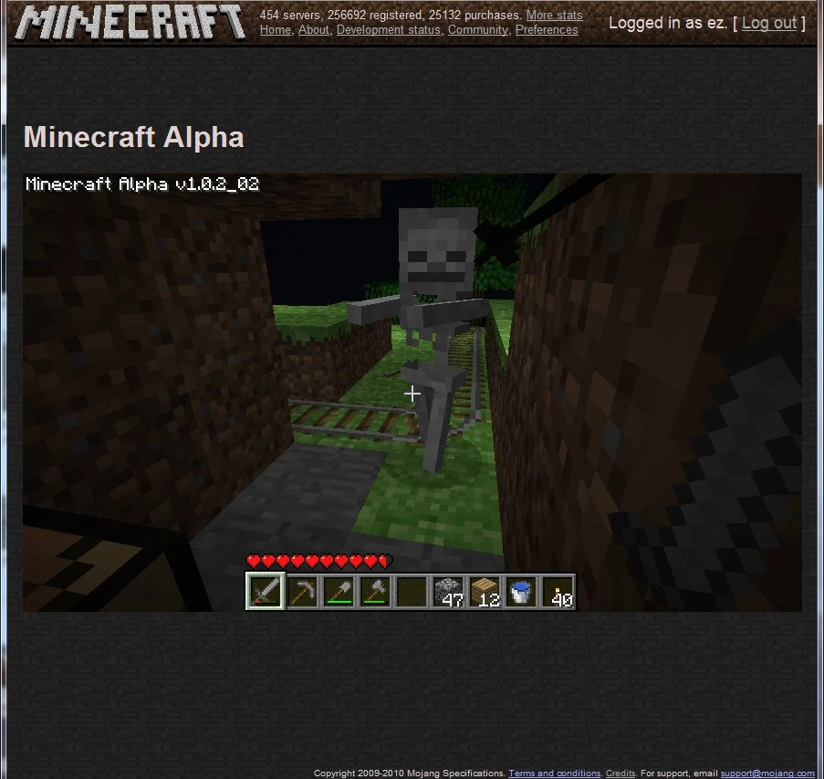 307 KB | Die Minecraft-Webseite während Alpha v1.0.3. |