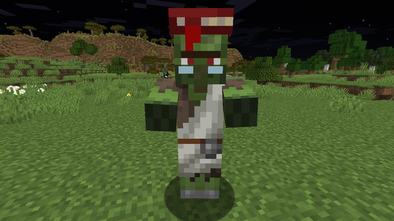 869 KB | Ein Dorfbewohnerzombie mit dem Beruf Geistlicher bei Nacht. Version: 1.16.4 |