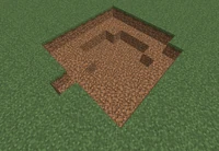 Breiter, flacher Krater eines Creepers, der fast 1 Block in der Luft explodiert ist -