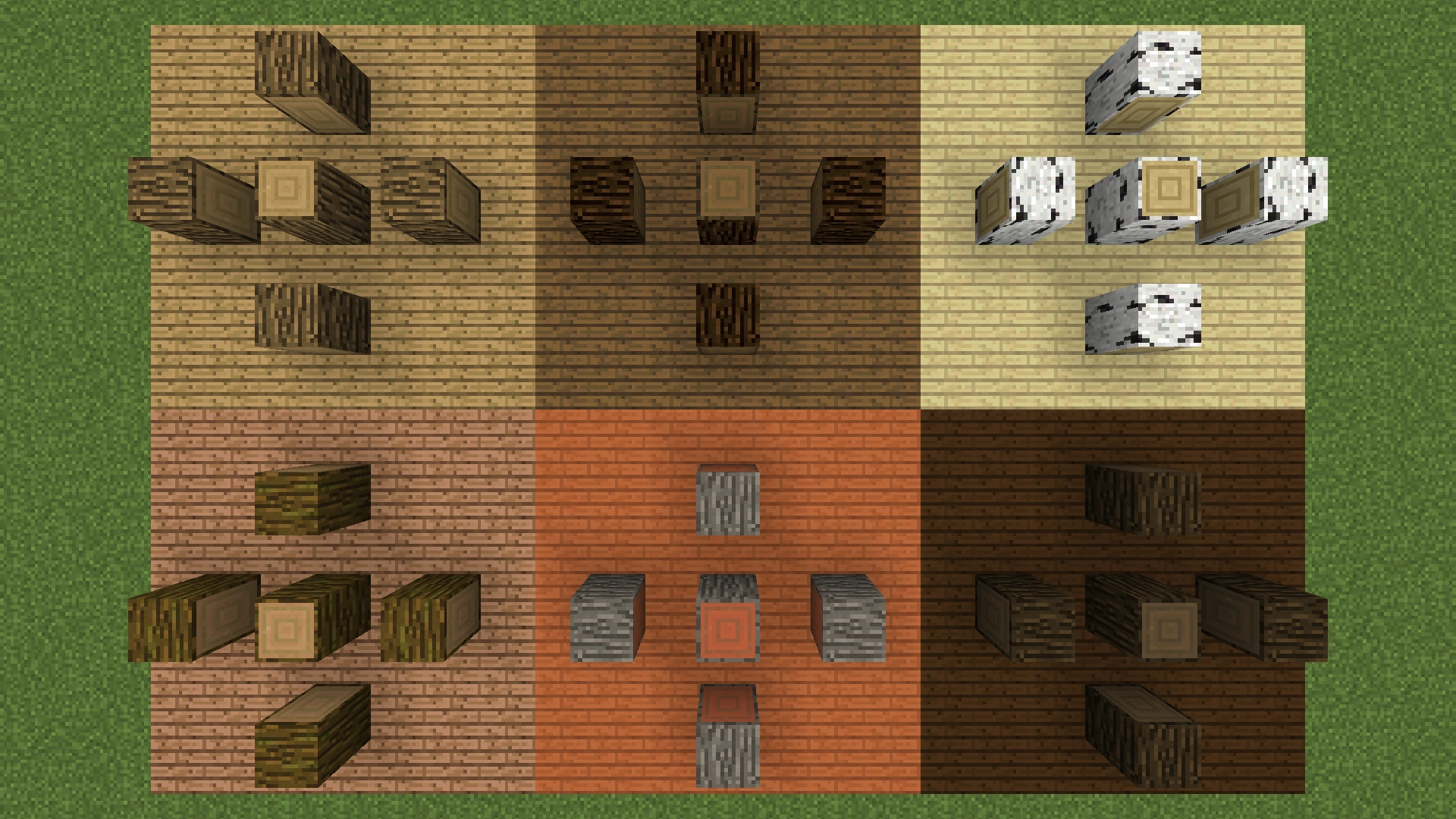 - Die Texturen von Eichen-, Fichten-, Tropen-, Akazien-, und Schwarzeichenholz sind identisch, die von Tropenholz ist nur um 90° verdreht.