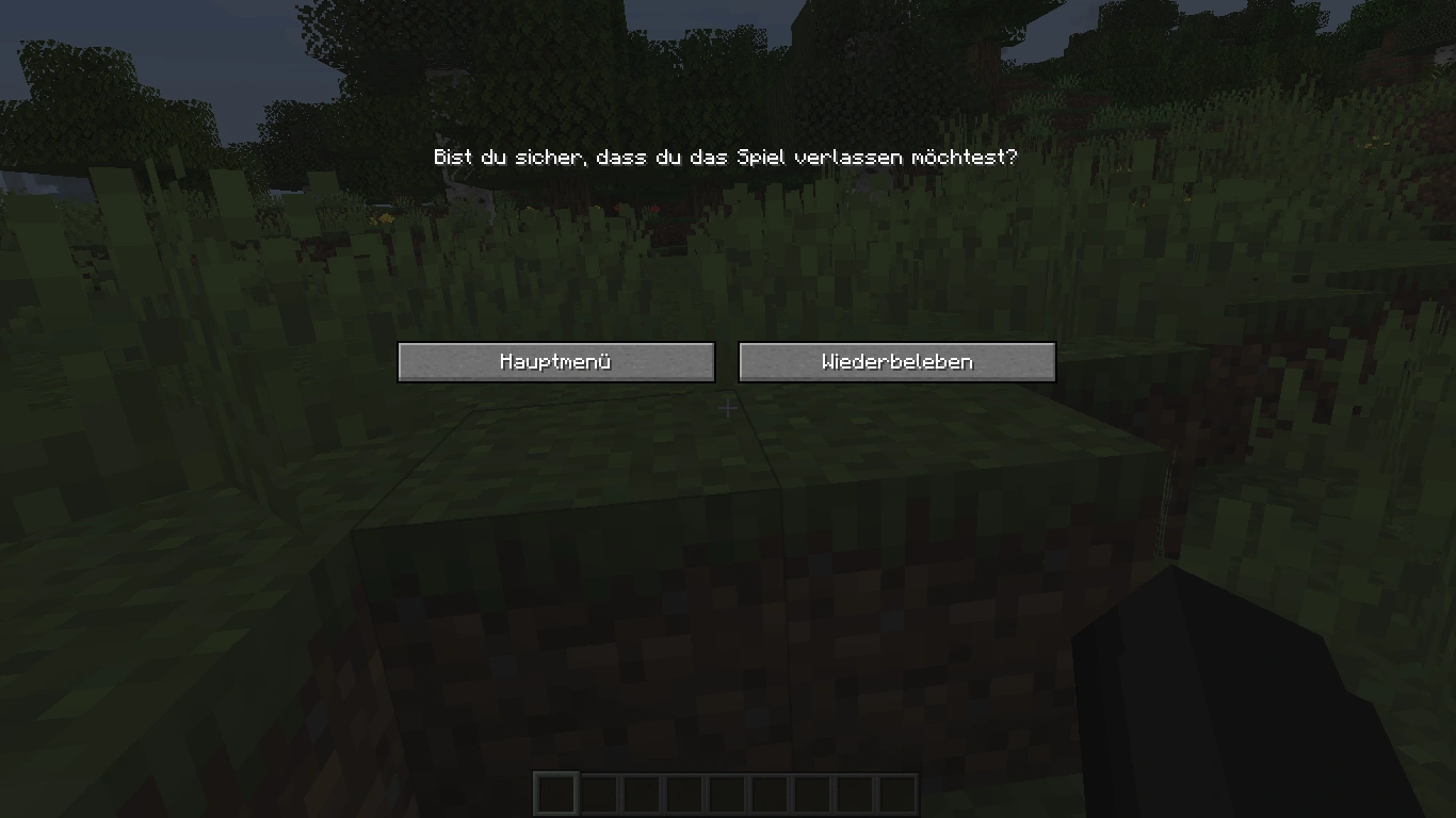 Im Todesbildschirm kann man nicht wie gewohnt das Menü mit Esc aufrufen. Ins Menü gelangt man, wenn man statt "Wiederbeleben" den Button "Hauptmenü" drückt und auch die Rückfrage mit "Hauptmenü" beantwortet. Im Menü kann man das Spiel speichern und zu einem späteren Zeitpunkt die Wiederbelebung durchführen. Im Einzelspielermodus ist dann kein Chunk mehr geladen, was die Uhr der Inventar-Drops anhält. Sie läuft erst weiter, wenn die Welt wieder gestartet und der Chunk mit den Drops geladen wird.