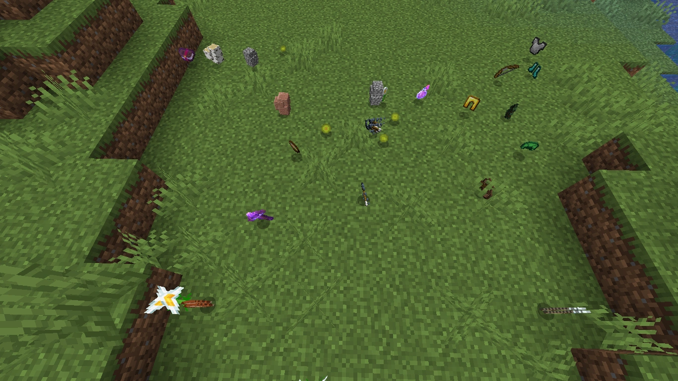 - Da der Drop ein Objekt ist, wird er gespeichert, d. h. er ist auch nach Verlassen und Neustart des Spiels noch vorhanden (zumindest im Einzelspielermodus. Im Mehrspielermodus läuft die Zeit weiter, solange sich noch andere Spieler im Umkreis der Drops aufhalten).