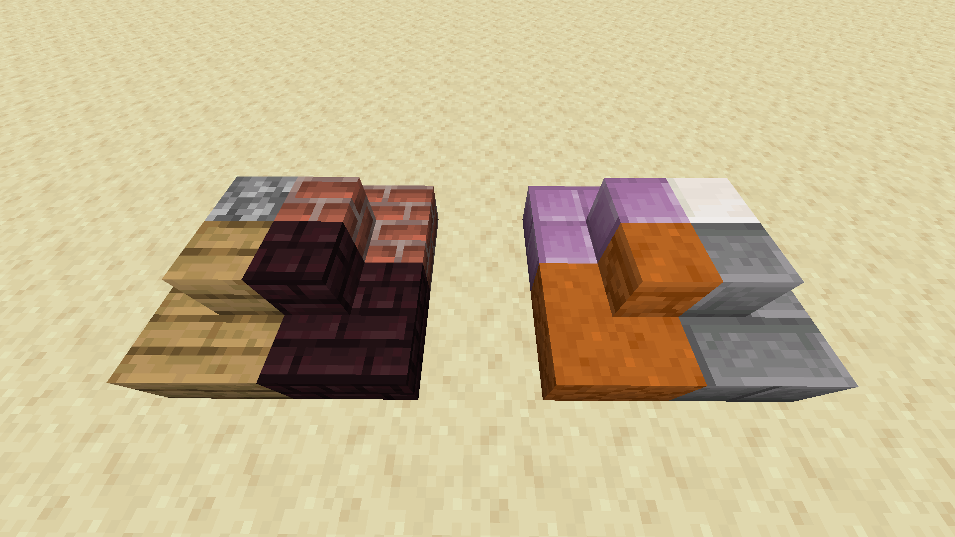 - Logisch gesehen müssten beim Herstellen von Treppen acht statt vier Treppen entnommen werden können. Da aus jedem der sechs Blöcke jeweils eine Treppe gebaut werden könnte, bleiben sechs 1/4 Stücke die man jeweils zu zwei weiteren Treppenblöcken zusammenfügen könnte.