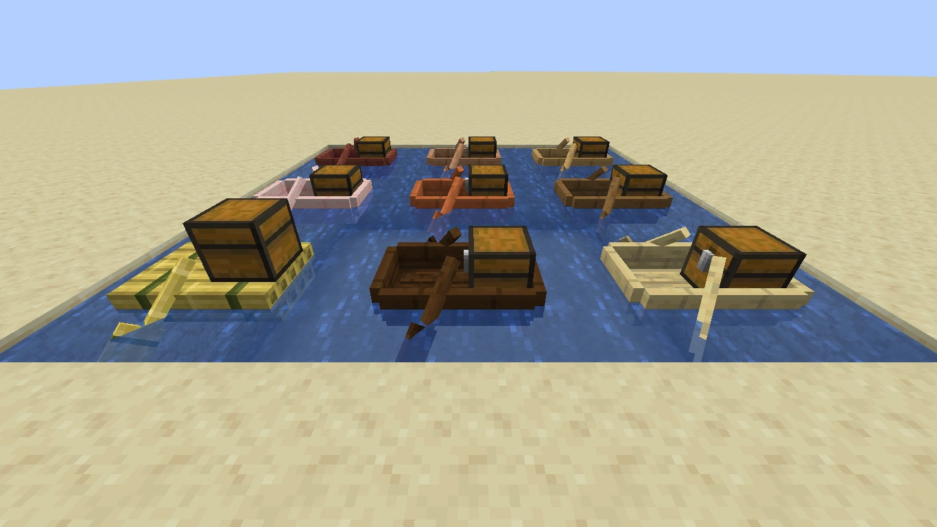Der Unterschied zwischen normalen Booten und Truhenbooten besteht darin, dass Truhenboote nur einen Passagier transportieren können, während Boote zwei Passagiere beinhalten können.