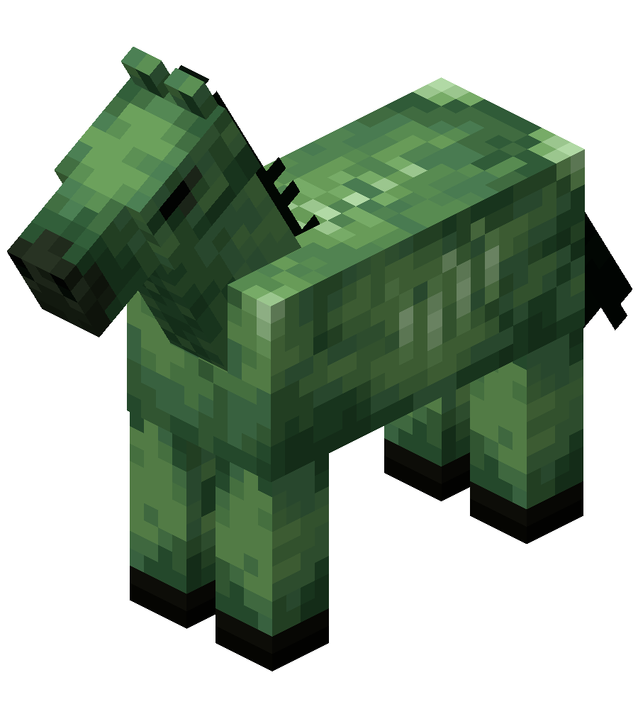 Zombiepferd | Zombiepferde kommen nicht natürlich vor und können auch nicht gezüchtet werden. Im Kreativ-Inventar befindet sich allerdings ein Spawn-Ei für Zombiepferde. Sie können auch mit dem Befehl /summon zombie_horse ins Spiel geholt werden.