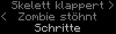 Alle Geräusche (Umwelt, von Kreaturen, Blöcken oder anderen Quellen) haben ihre eigenen, individuellen Untertitel. Für Kreaturen, wird der Kreaturenname mit einem spezifischen Verb dargestellt, wie z.B. "Kaninchen fiept" oder "Dorfbewohner murmelt". Geräusche beim Abbauen oder Setzen von Blöcken sowie die Schrittgeräusche werden allerdings nicht auf die Beschaffenheit des jeweiligen Blockes spezifiziert.