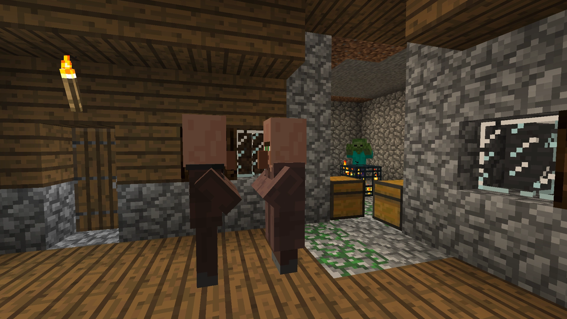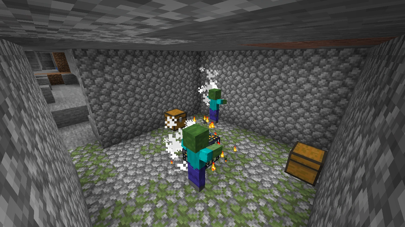 - Zombies erscheinen durch einen Zombie-Spawner. Es besteht eine Chance von 50%, dass es sich um einen Zombie-Spawner handelt.