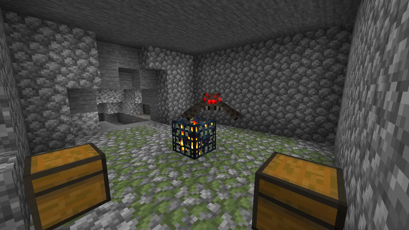 - Spinnen erscheinen durch einen Spinnen-Spawner. Eine Chance von 25% besteht, dass es sich um einen Spinnen-Spawner handelt.