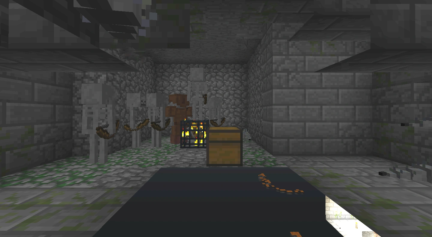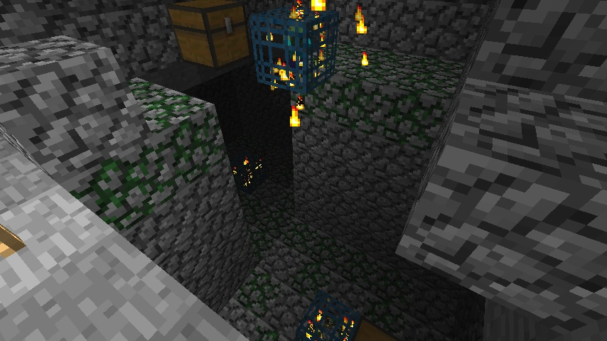 - Es kann passieren, dass mehrere Verliese direkt ineinander generiert werden. Es sind dann mehrere Spawnern vorhanden, wobei Truhen oft überschrieben werden und daher oft trotzdem nur zwei vorhanden sind.
