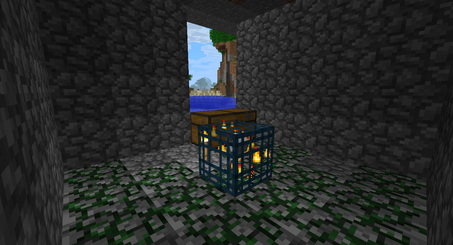Der Spawner symbolisiert hier eine Art Wache für die Inventargegenstände, die sich in den Truhen befinden. Die möglichen Gegenstände werden im folgenden Abschnitt aufgezählt. Er spawnt solange Zombies, Skelette oder Spinnen, bis man ihn deaktiviert. Dazu reicht bei kleinen Verliesen bereits eine Fackel, die man auf den Spawner stellen muss. Alternativ können auch vier Fackeln rund um den Spawner aufgestellt werden.