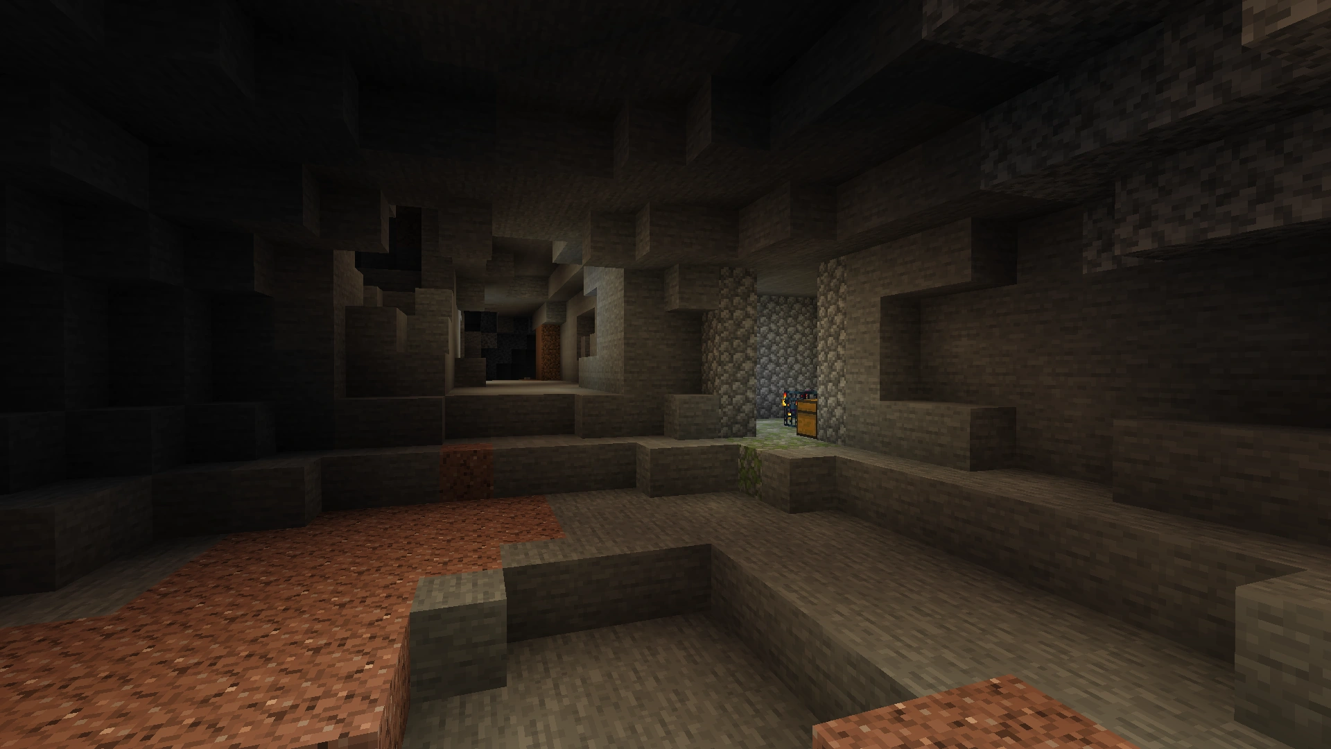 Die gezielte Suche nach Verliesen ohne externe Hilfsmittel ist allerdings schwierig, da sie nur selten generiert werden. Wie bereits erwähnt, können Verliese nicht durch den Befehl /locate gefunden werden, da sie auf andere Weise als die meisten anderen Bauwerke erzeugt werden. Der vielversprechendste Ansatz besteht daher im Erkunden von Höhlen und Minen, da Verliese immer mit unterirdischen Hohlräumen verbunden sind.