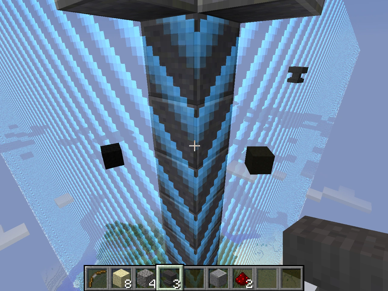 Die Anzeige der Weltbarriere hört bei der 256-Block-Grenze nach oben auf, die Barriere besteht aber unsichtbar auch in höheren Ebenen