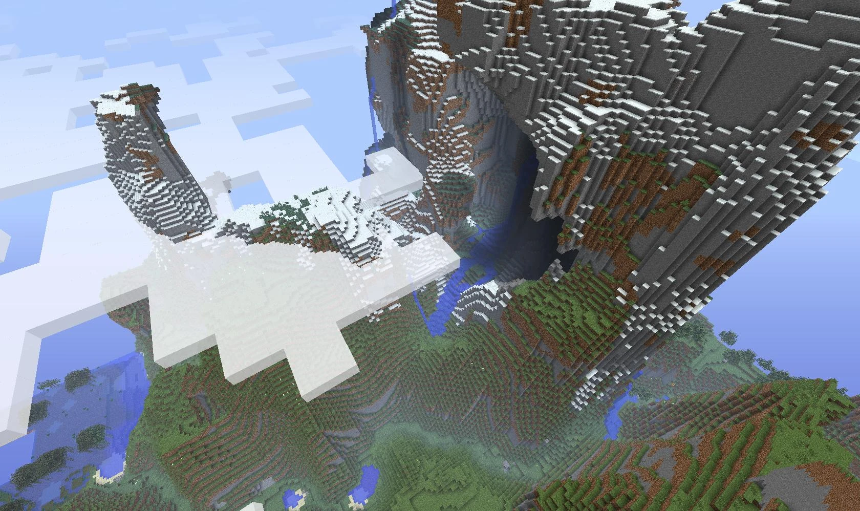 Erzeugt große Biome mit sehr hohen Bergen und tiefen Schluchten mit Flüssen. Die bisherige Grenze für die Landschaftsgenerierung (ohne Bäume) lag bei Höhe 128, d.h. kurz unter der Wolkengrenze. Das wird hier erstmalig und extrem überschritten, die Berge reichen bis fast an die Maximalhöhe 256 heran.