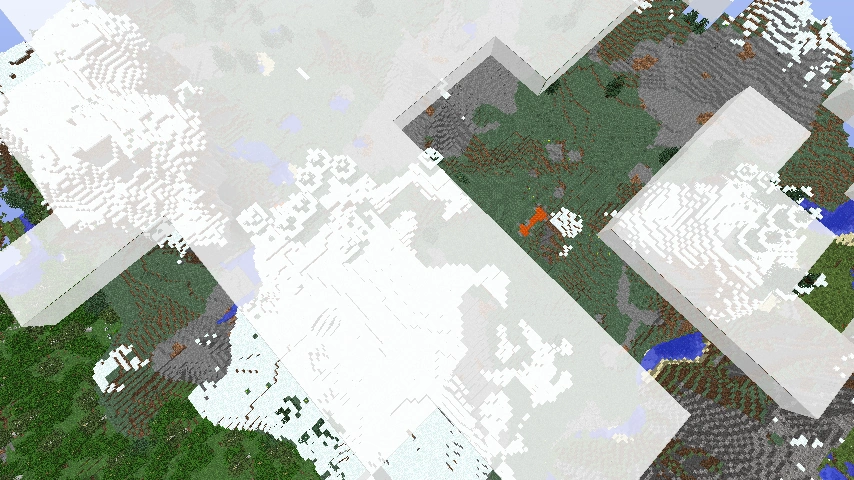 Wolken bewegen sich im Gegensatz zu Kreaturen nicht wirklich in der Welt. Sie werden wie Sonne und Mond als grafische Elemente in die Welt hineinprojiziert, daher reagieren sie auch nicht auf die Spielwelt, wie zum Beispiel auf hohe Berge oder große Gebäude. Während man aber Sonne und Mond nie erreichen kann, kann man über, unter und in die Wolken fliegen. Dabei kann man gut beobachten, dass sie unabhängig vom Blockraster generiert werden. Erzeugt man z. B. mit dem Befehl /fill eine Plattform im Himmel genau auf Wolkenhöhe (Y=192) und bewegt sich in verschiedenen Winkeln, macht man folgende Beobachtungen:
