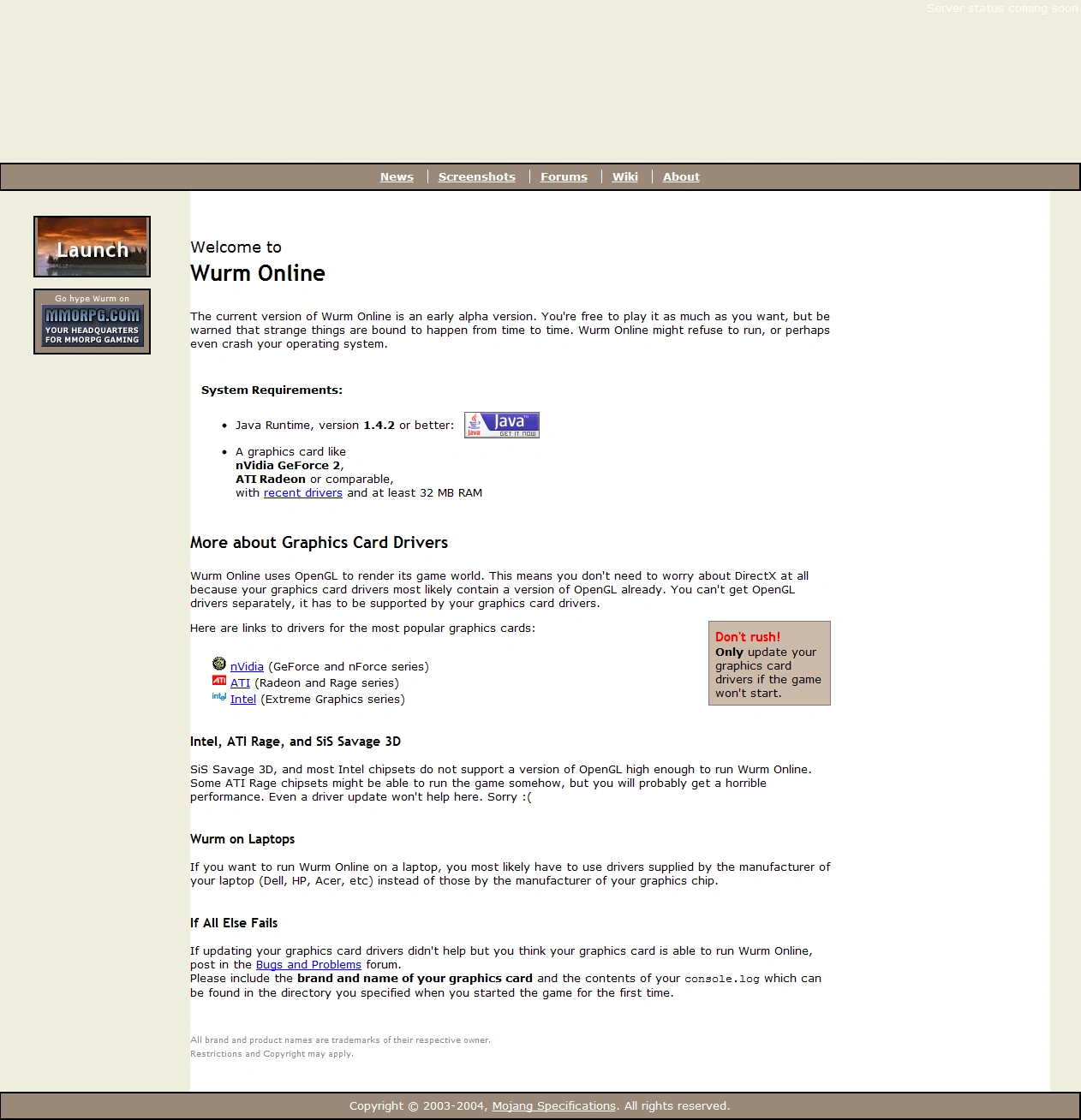 Veröffentlichung von Wurm Online in der Alpha-Phase auf mojang.com im Dezember 2004