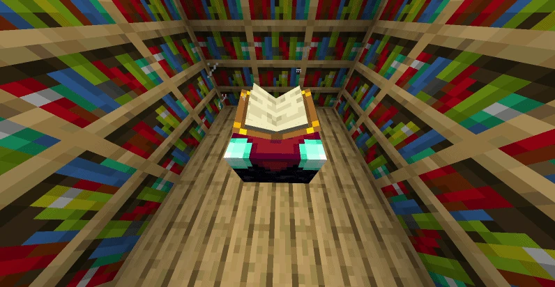 - Wenn man sich dem Zaubertisch auf weniger als 4 Blöcke nähert, wird die Animation eines blätternden Buches gezeigt, aber alle Seiten haben den selben Inhalt.