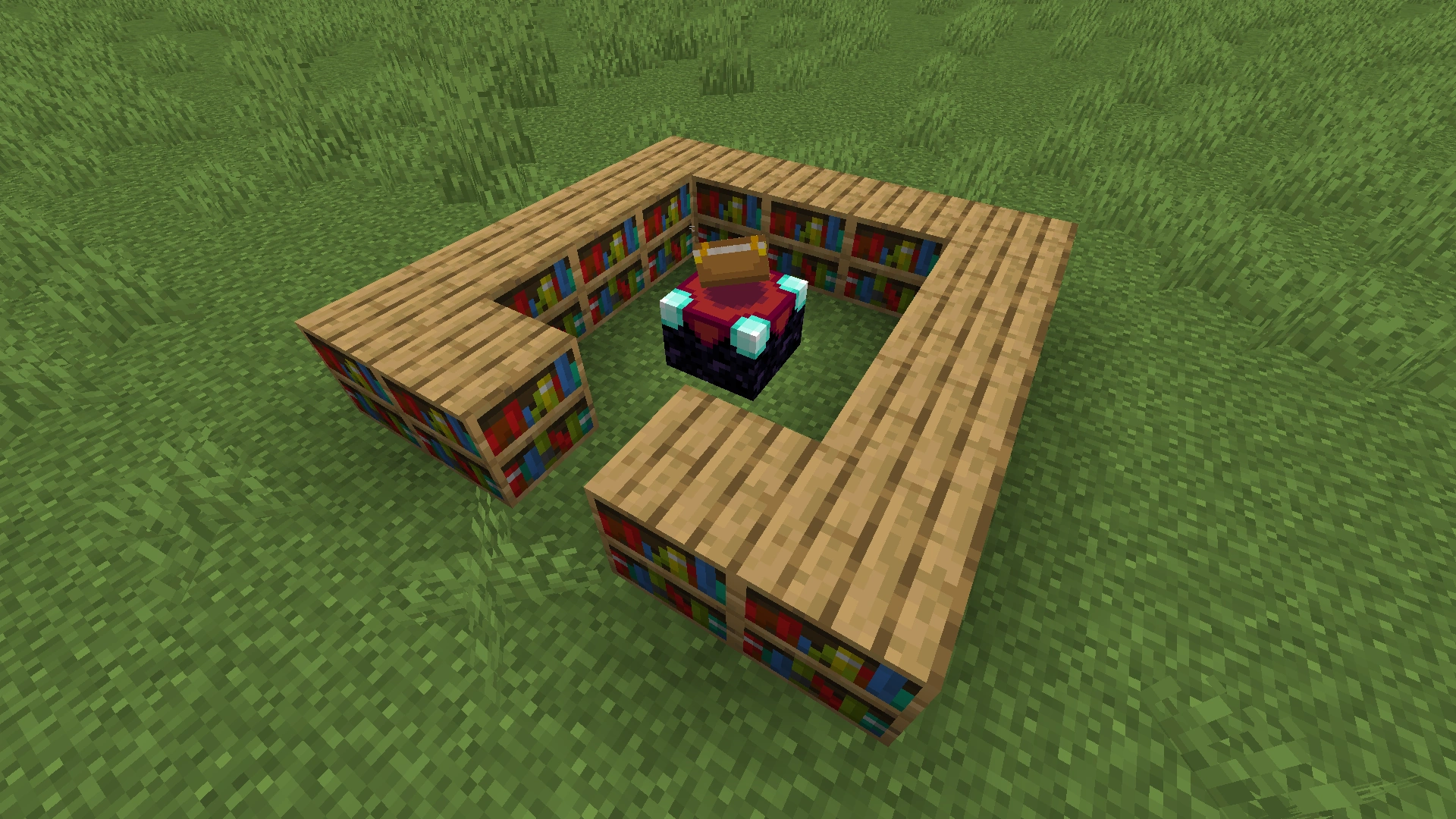 Ein Zaubertisch alleine bietet nur Zaubersprüche bis Erfahrungsstufe acht an. Stellt man Bücherregale mit einem Block Abstand auf, kann man die angebotenen Erfahrungsstufen und damit die Stärke der Verzauberungen erhöhen. Wird ein Bücherregal platziert, fliegen weiße Buchstaben zum Zaubertisch und werden scheinbar aufgesogen (wenn im Menü/Optionen/Grafikeinstellungen die Partikel aktiviert sind). Die Anzahl der Bücherregale bestimmt den Bereich der Erfahrungsstufen, die angeboten werden. Je mehr Bücherregale man aufstellt, desto höhere Erfahrungsstufen werden angeboten. Dies ist bis zu einem Maximum von 15 Bücherregalen möglich. Stellt man weitere Bücherregale dazu, hat das nur noch dekorative Auswirkungen, die Erfahrungsstufen erhöhen sich nicht weiter.